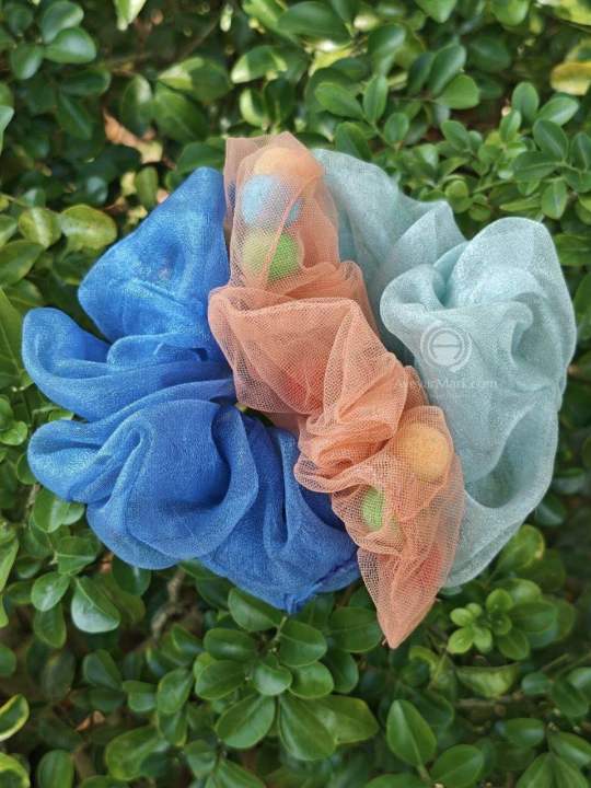 ခေါင်းစည်းကြိုး 3ခုပါ၁တွဲ Colorful Hair Band Scrunchies Hair Band 3pcs set