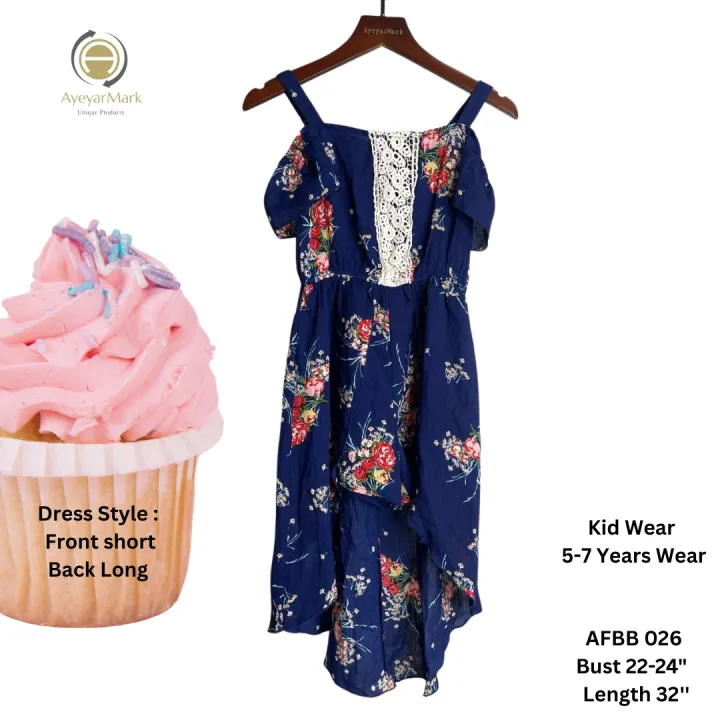 ကလေးဝတ်ချည်သား ဂါဝန် မင်းသမီးဝတ်စုံဂါဝန် မွေးနေ့ဝတ်စုံ 5-7 Years Wear Party Dress Princess Dress for Kids AyeyarMark Fashion