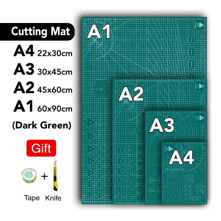 A4/A3/A2/A1 Self Healing Cutting Mat | Cutting Pad | Craft Cutting Board | Non-Slip Surface For Fabric | Double Sided Line Guides Self Healing Craft Mat | Desk DIY Handmade Stickers Cutting Plate Office Supplies | PVC Patchwork Cut Pad Durable Tools