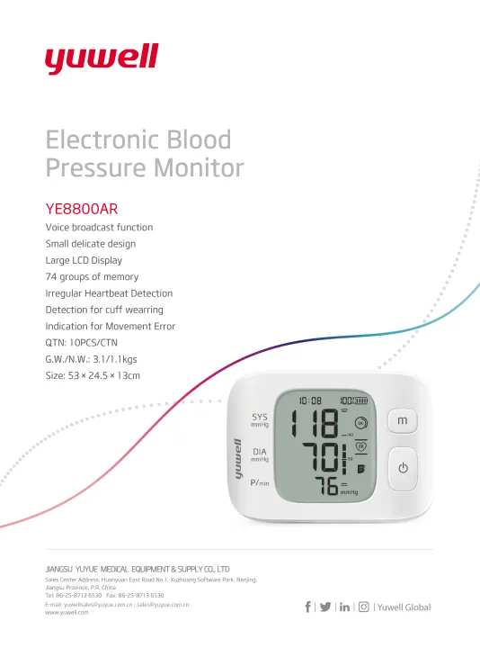 Digital Blood Pressure Monitor YE 8800AR with Myanmar Voice (Wrist Type)