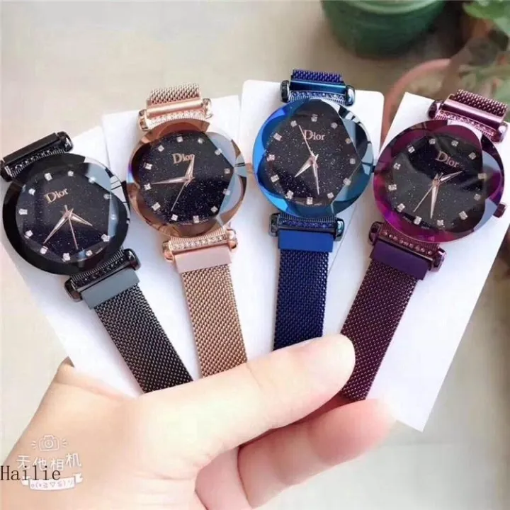 Dior%20women's%20steel%20belt%20quartz%20watch%20starry%20round%20dial%20lazy%20magnetic%20watch%20strap%20(Black)%20-%20Image%201