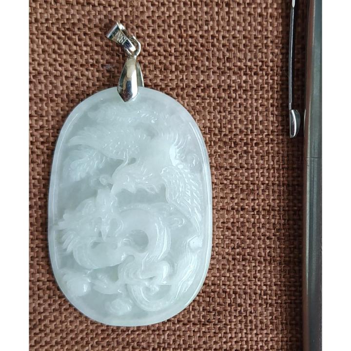 Dragon and Phoenix jade pendant light green colour, ကျောက်စိမ်း နဂါး ဇာမဏီ ဆွဲသီး အစိမ်းဖျော့ရောင်