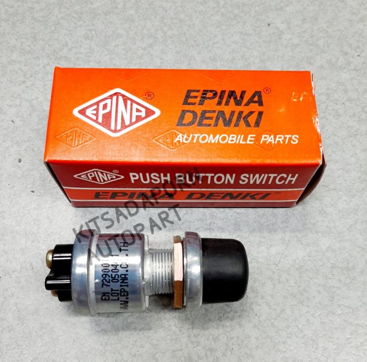 Epina Denki starter/horn switch, black rubber head, 2 pins, push-release