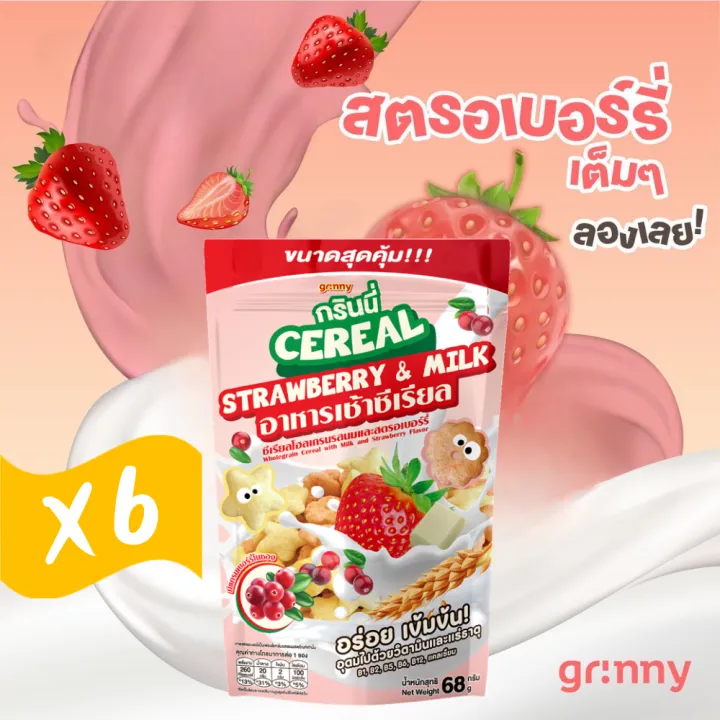 Grinny Grinny Whole Grain Cereal, Milk and Strawberry Flavor, 68g (6 Pieces) # 18352500