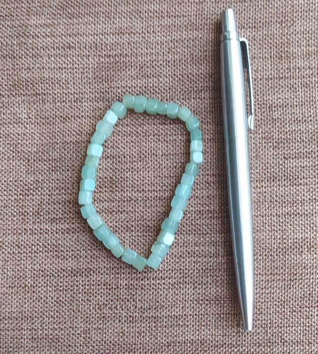 Jade cube bracelet elastic type, ကျောက်စိမ်း ကုဗအံစာတုံးပုံ မျှော့ကြိုးလက်ပတ်၊