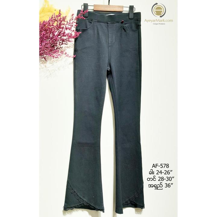 ဂျင်းချည်သား မျော့ကြိုးဘောင်းဘီရှည် ဇာ အနားကွတ် အမျိုးသမီးဝတ် Jean Cotton Long Pant AyeyarMark Fashion