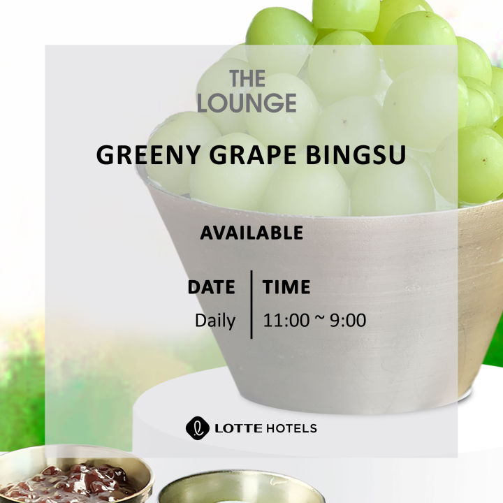 LOTTE HOTEL The Lounge "Greeny Grape Bingsu" Refreshing in every bite, The Lounge's Seasonal Delight, Green Grape Bingsu! "