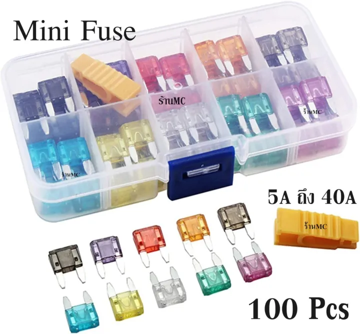 MC shop mini fuse with long legs (set of 1 box boxset = 100 pieces), total size (7 sizes 5,7.5,10,15,20,25,30 amp) mini fuse auto fuse Class A