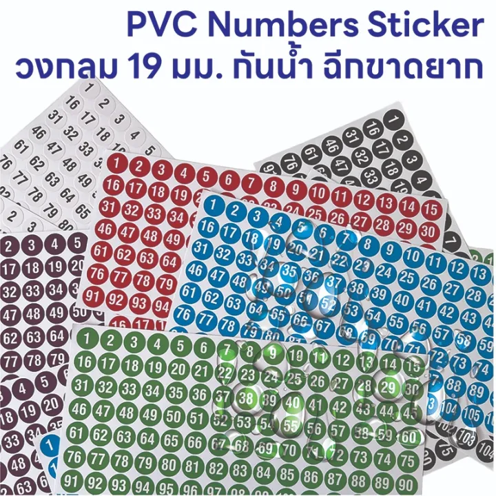 Number 1-106 PVC sticker, circle size 19mm. 100% water resistant, cold tear, hard, sunny resistant, 6 tones color
