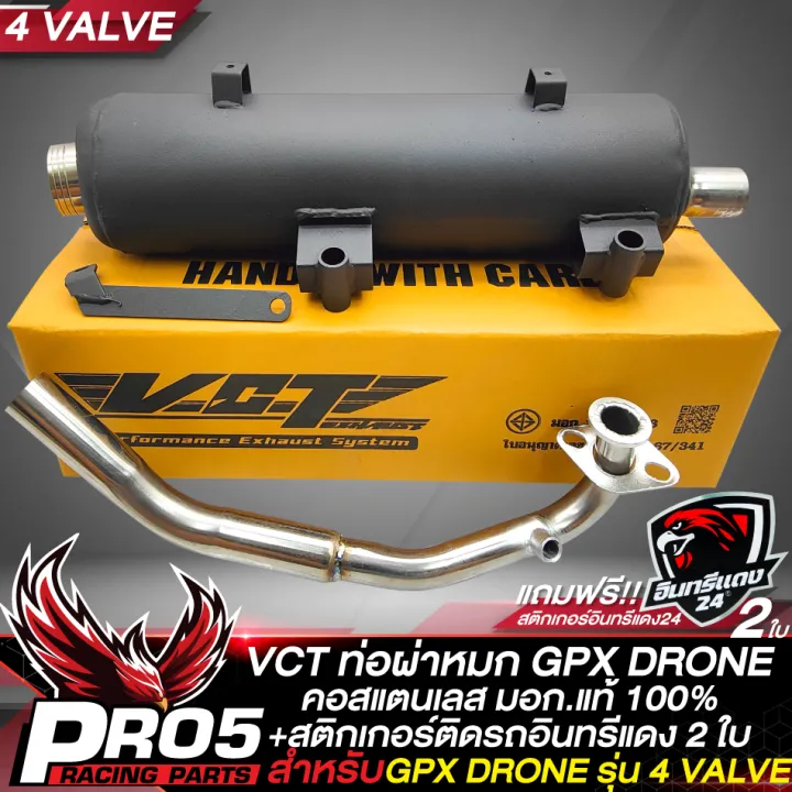 (Preorder) DRONE exhaust pipe, GPX DRONE muffler, 4-valve model, black, VCT stainless steel neck, TIS 341-2543, No. T4499-67/341 + 2 Red Eagle car stickers