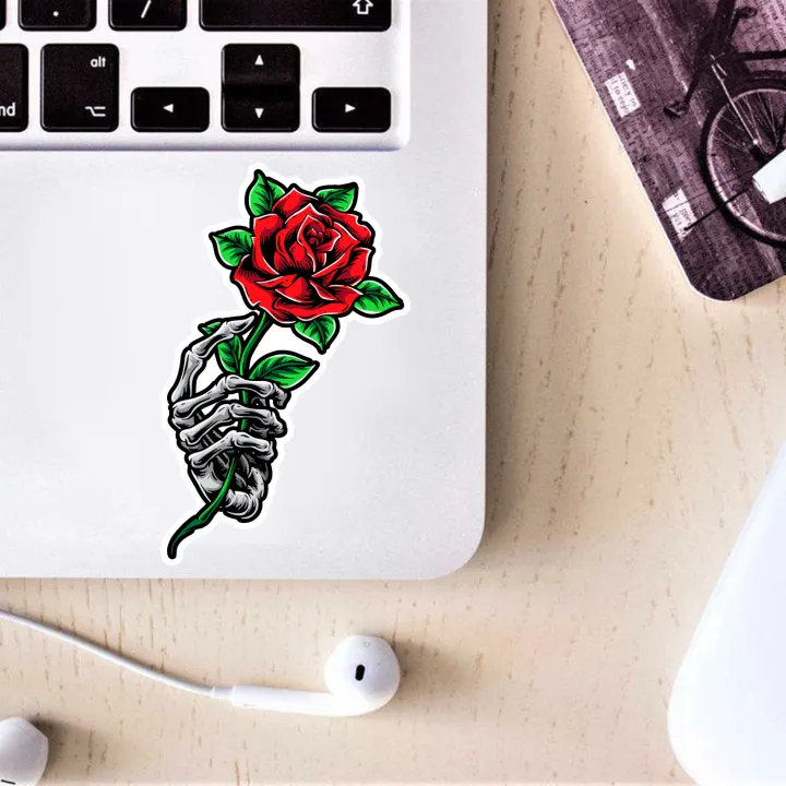Skeleton Hand Holding Rose Sticker - 5 Pcs Set | Laptop Sticker | Car Sticker | Phone Sticker | Waterbottle Sticker | Wall Sticker | Die Cut Sticker| Waterproof Sticker