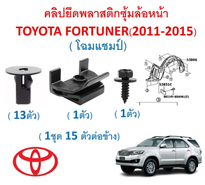 SKU-A508( 1 set of 15 per side) plastic front wheel arch clip Toyota Fortuner Gen1 Championship look (2011-2015)
