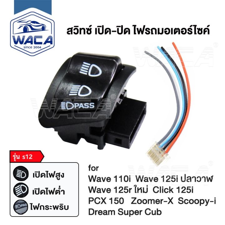 WACA S12 series high-low power switch flashing 3 step switch headlight for Honda Wave 110i, whale wave 125i, new wave 125R, click 125i ,PCX 150, Zoomer-X, scoopy-I, dream Super Cub (not LED model), headlight switch, FSA Honda