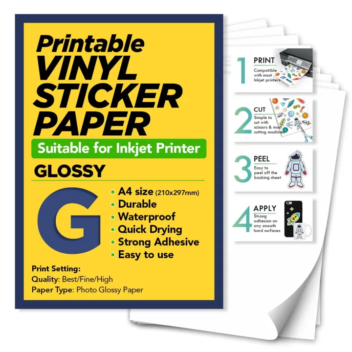 White Glossy | Inkjet Waterproof Vinyl Sticker Paper | Comparable to Vinyl Inkjet | A4 Size Full Sheet Label | Inkjet Printers | Digital Labels